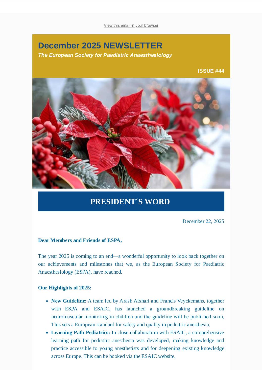 Our editorial team very much welcome any suggestions, comments and contributions to our Newsletter. If you would like to contribute to our Newsletter with an article, please contact us at info@euroespa.com